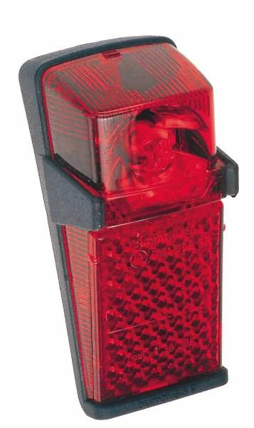 Das LineTec-Prismensystem mit seiner eleganten Klarglas-Optik ist als Kranz um den Rückstrahler gelegt. Es leuchten rote Lichtkreise strahlend hell. Die aktive Signalisationsfläche ist extrem groß, obwohl das Rücklicht in der Form selbst äußerst zierlich ist.