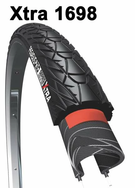 Der Pegasus 1698 Xtra ist sehr vielseitig . Er eignet sich für jegliche Fahrradtour sowie für die ganz normalen Stadtfahrten. Der Pegasus Xtra Reflex verfügt über exzellente Laufeigenschaften, ist sehr robust und dank Anti-Leaking-Pannenschutz sehr sicher. Der Drahtreifen wiegt circa 695 Gramm und wird in der Größe 26 x 1.75 Zoll geliefert, was dem ETRTO-Standard 47-559 entspricht. Er ist kompatibel mit Fahrraddynamos und hat einen reflektierenden Streifen, sodass Sie in der Dunkelheit von anderen Verkehrsteilnehmern besser wahrgenommen werden, wenn deren Scheinwerferlicht auf den Fahrradreifen trifft und zurückgeworfen wird.