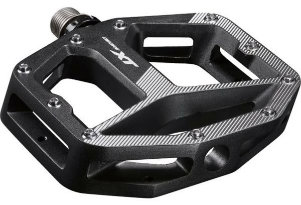 Kein Fan von Clickpedalen? Mit der Shimano XT Plattformpedale hast du Stabilität und hohen Grip nicht nur abseits des Asphalts, sondern auch speziell in den Abfahrten und auf den Trails. Die große Standfläche sorgt dafür, dass dein Fuß bergab genügend Möglichkeit zum Ausgleich bekommt. Der Halt auf dem Pedal ist durch die Pin besetzte Oberfläche sicher und fest. Die aus Aluminium hergestellten Pedal sind aus Aluminium und werden mit deiner CrMo-Achse verbaut.
